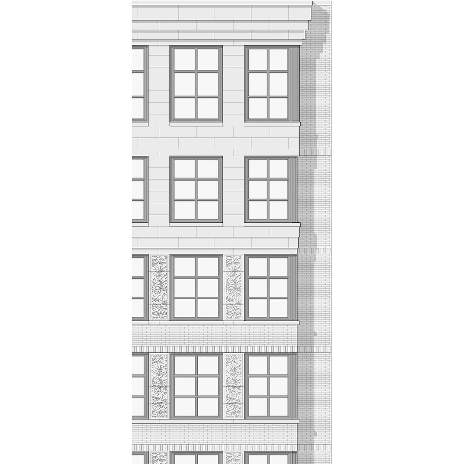 The streamlined, subtle ornamentation and geometric forms on the building’s façade recall the classic Art Deco architecture of the Upper West Side. Brick soldier courses and terra-cotta panels separate the windows. The floral motif evokes the early-twentieth-century adornments seen throughout the historic district.