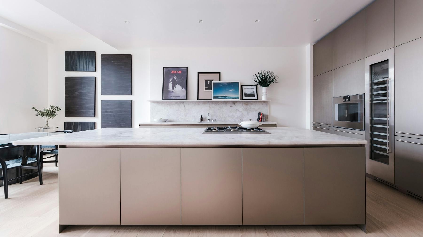 41 Great Jones’ minimalist interiors are defined by 10-inch wide wide-plank oak floors and large marble slabs. These subtle but bold materials serve as a calming counterpoint to the building’s ornate exterior. Original exposed brick walls were carefully sandblasted to add warmth and texture.