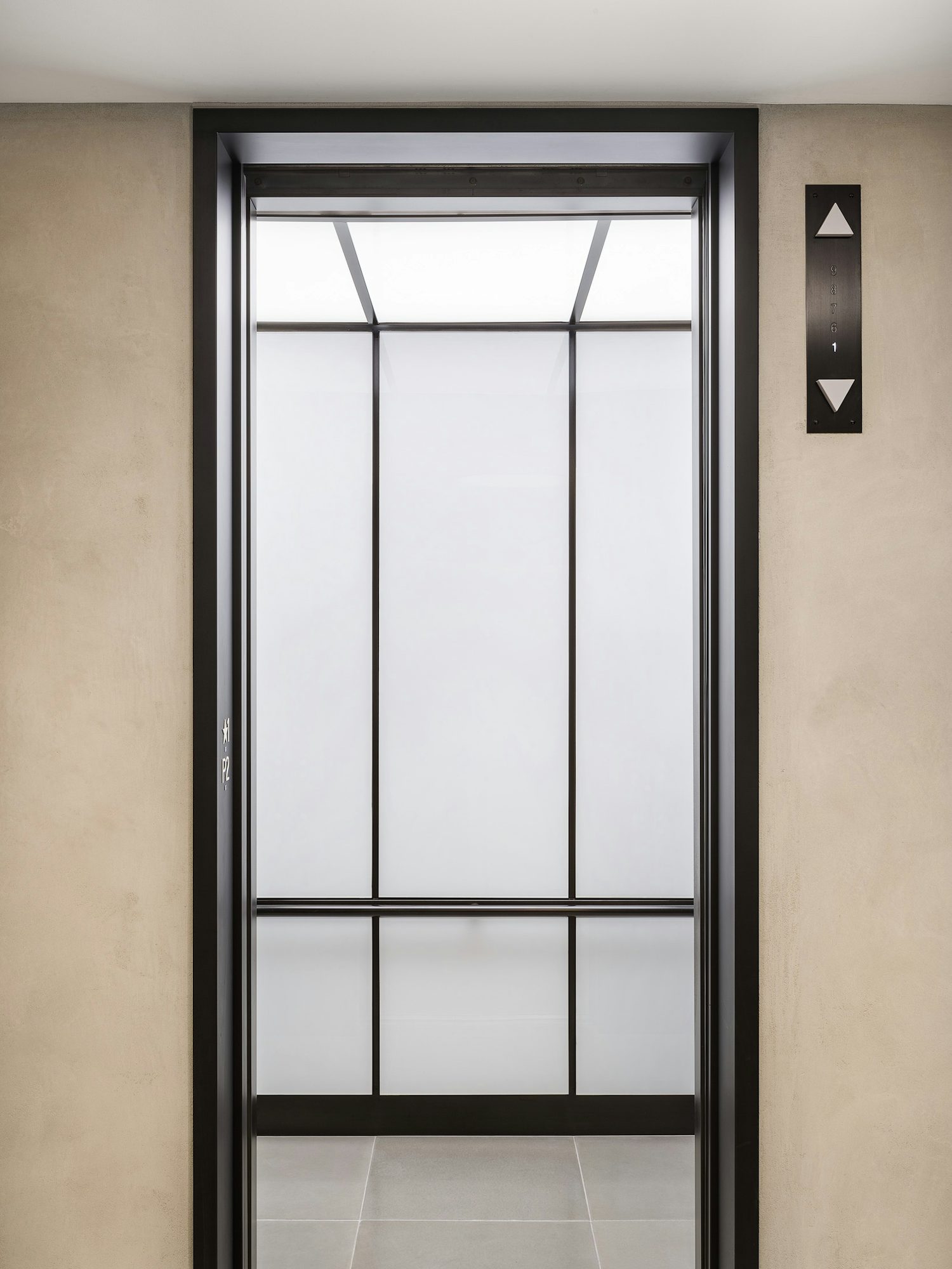 In the heart of New York City’s gallery district in Chelsea, this commercial building has a façade constructed of factory sash windows in a bead-blasted aluminum frame. Inside, blackened steel, finished concrete, and salvaged wood reflect the neighborhood’s post-industrial character.