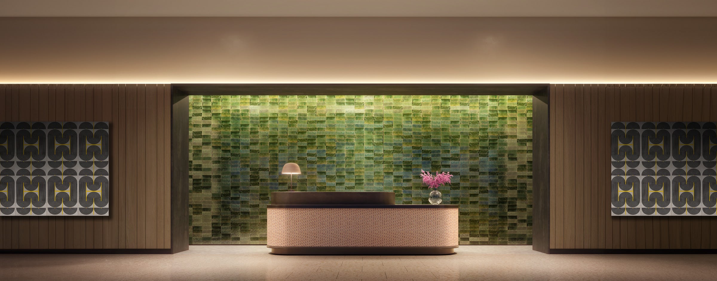 "Say so long to subtle. Becca Roderick, Design Director of Interiors, Morris Adjmi Architects, tells me bold colors and patterns in design will be big in the coming year. “When it comes to design trends for next year, we're expecting to see a continued commitment to color. Pigments of varying intensity are going to be omnipresent in paint colors, tile, millwork, and textiles. You can see the clever use of color in our project in The Huron, which has a stunning wall of blue-green tile at the entrance,” she explains. “When residents enter the building, that burst of color immediately evokes the energy and the vibrancy of the surrounding Greenpoint neighborhood and is an instant mood booster—something we can all welcome in 2024.”
