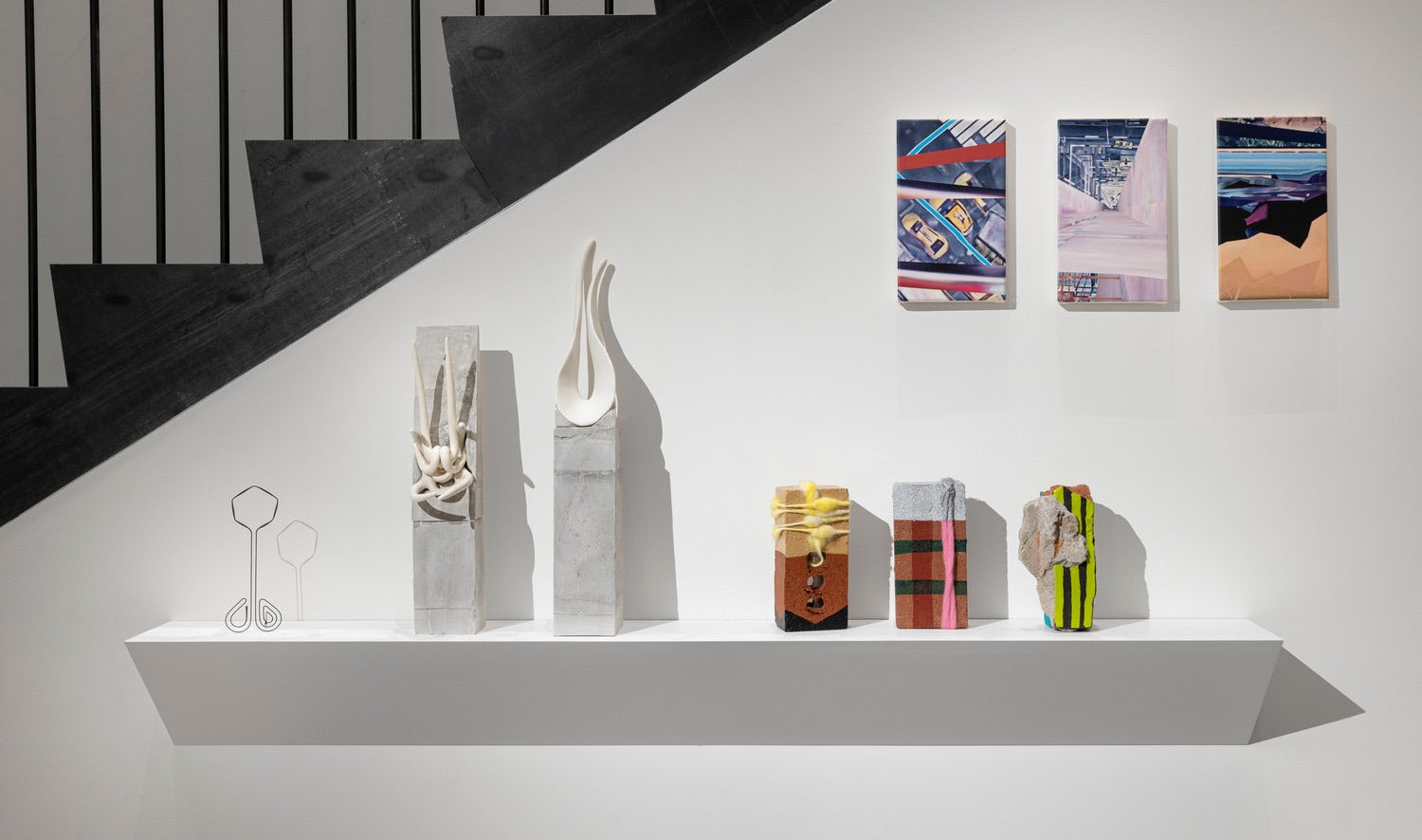 Surveying a range of small-scale work, connecting threads include materially inventive approaches to abstraction; oblique depictions of figures and creatures; and work that considers the built environment as a source of inspiration, with approaches to the everyday that are both playful and sincere.