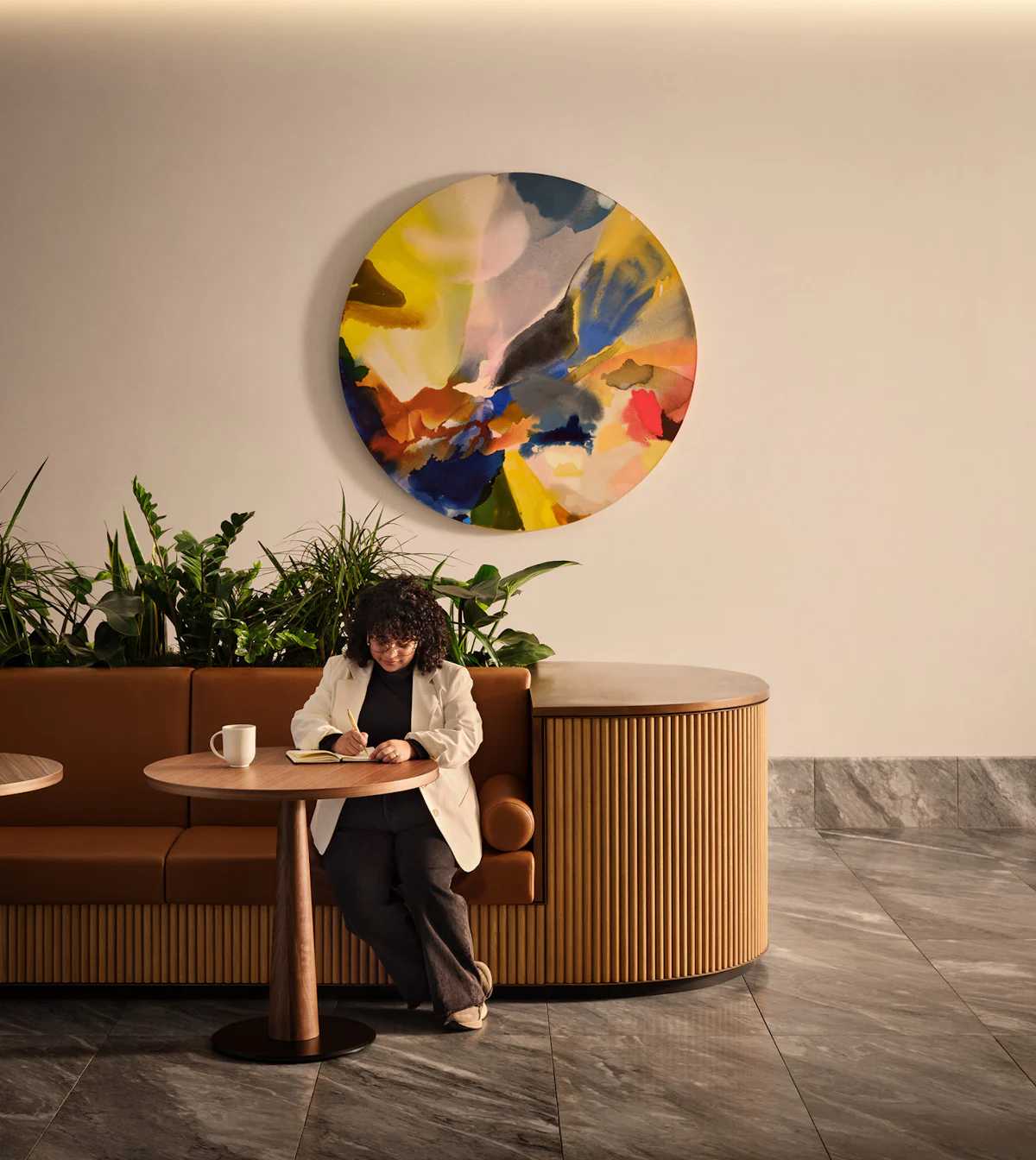 Drawing inspiration from hotel lobbies, residential amenities, and art galleries, the redesigned lobby creates a warm, modern environment that supports the building’s community in new and meaningful ways.