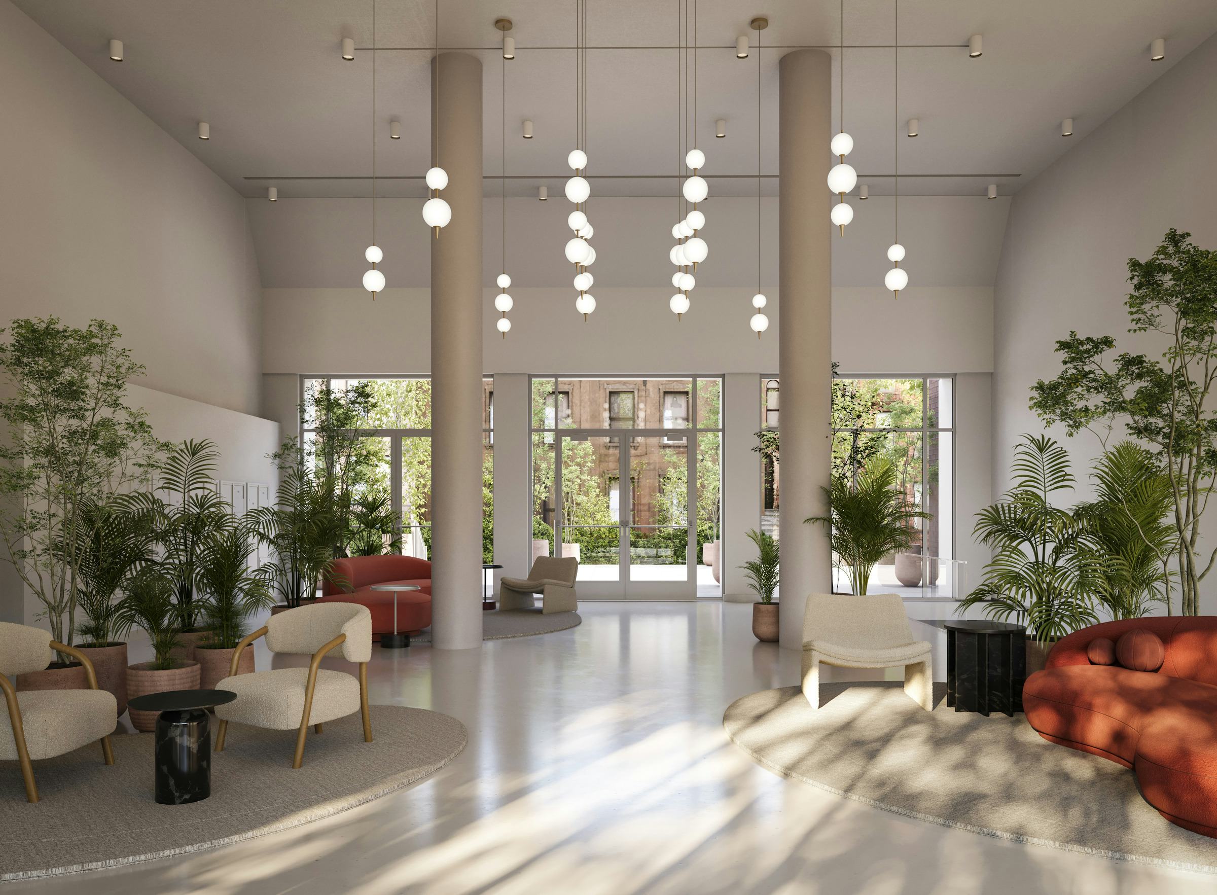 Mason Gray's amenity package includes a striking double-height lobby lounge, a state-of-the-art fitness center, co-working spaces, bicycle storage, an attended parking garage, and private resident storage on every floor. Beyond the lobby, residents have access to a landscaped terrace.