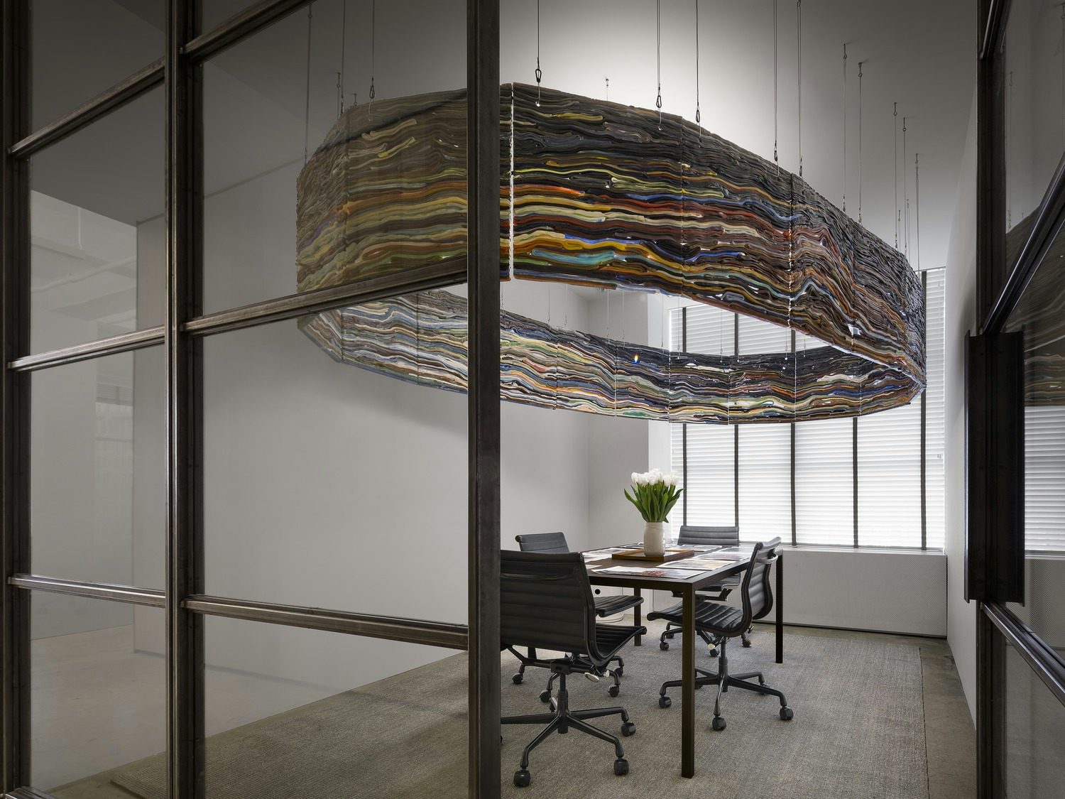Matthias van Arkel’s riotous paintings, sculptures, and indeterminate objects made of platinum silicone provide a bold counterpoint to the refined architectural space of the MA office. Although the suite of multilayered and multidimensional works are not necessarily site-specific, they add a sense of specificity to any site, crawling up walls and rotting into floors to synthesize a harmonic play between the hard and the soft.