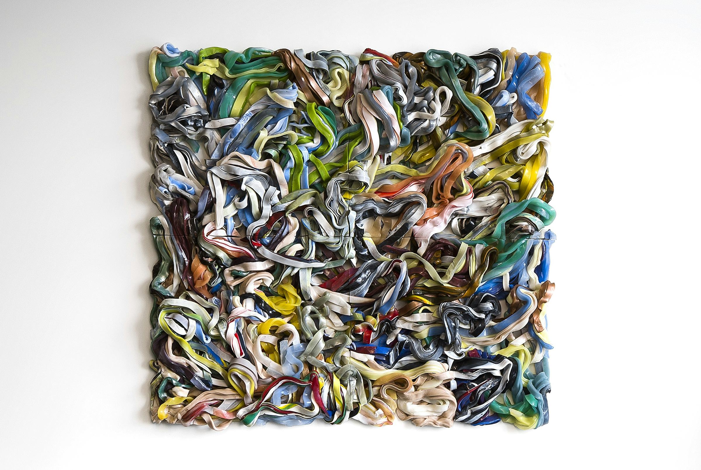 Matthias van Arkel uses platinum silicone rubber to create wall-based work and sculptures that explore the formal qualities of the material. Drawing on multiple twentieth-century art movements that bring together formalist concerns of postwar abstraction, the minimalist use of industrial materials, treatment of space, the emphasis on process, and the chance of post-minimalism, the resultant works are expressionistic but also have a strong tactile quality.