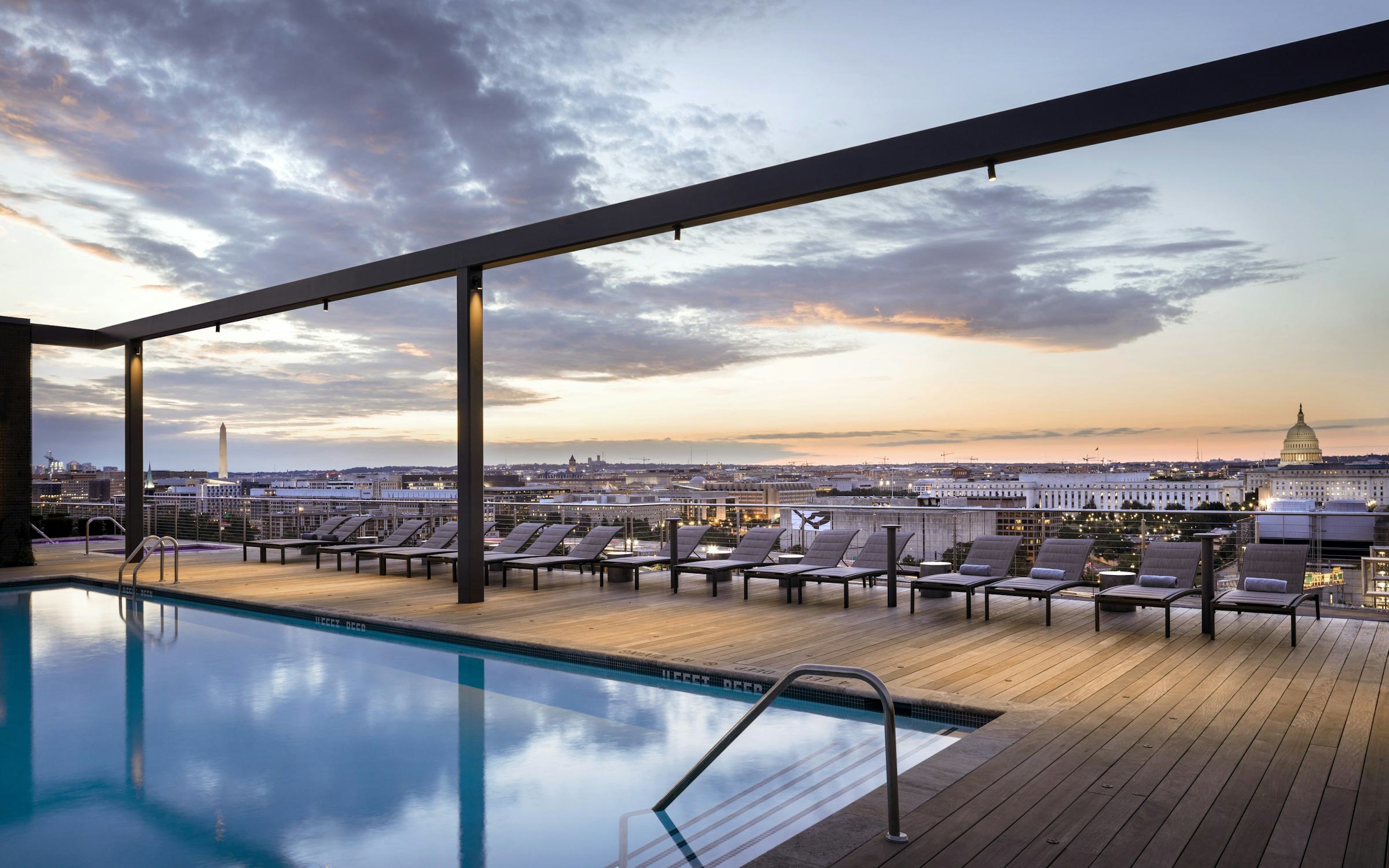 One Hill South is a new apartment building occupying half a block in Washington, D.C.’s Capitol Riverfront neighborhood. A checkerboard pattern of two-story projections distinguishes the glass mid-rise from the similarly scaled office and residential buildings in the quickly developing neighborhood.