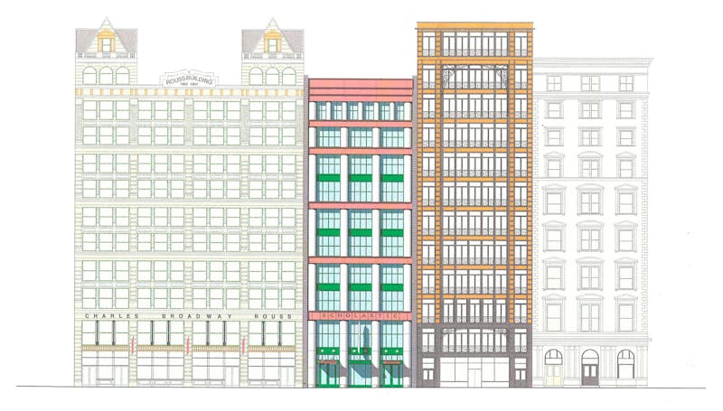 The Scholastic Building's Broadway façade features steel, terra-cotta, and stone. The design takes its inspiration from the classical organization of the elegant 19th-century façades that line the street.